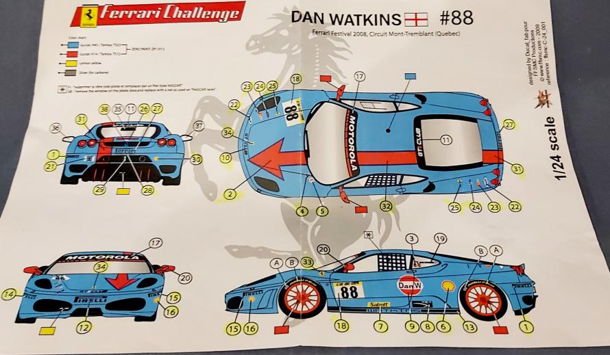 Franck Magnouloux nous dévoile sa très belle réalisation au 1/24ème : une Ferrari 360 Modena de chez Tamiya aux couleurs de la voiture pilotée par Dan Watkins lors du Ferrari festival 2008 sur le circuit de Mont-Tremblant au Québec.
